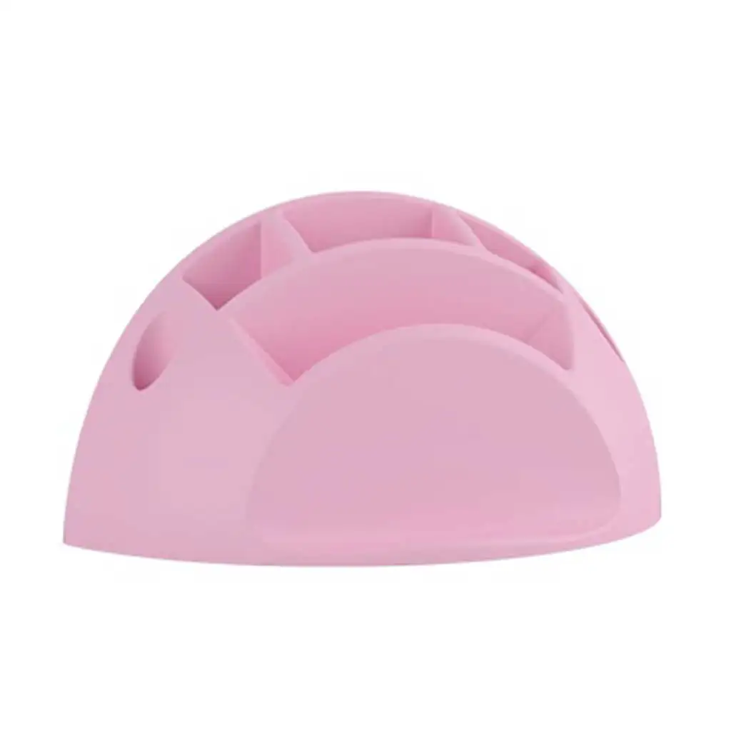 Suportul de birou Smart – de culoare roz pastel este o soluție practică și decorativă pentru organizarea biroului, în special pentru copii, elevi sau pentru cei care apreciază un mediu de lucru frumos și ordonat. Designul compact, în formă de semicerc, conține mai multe compartimente de diferite dimensiuni, care ajută la depozitarea clară a creioanelor, stilourilor, radierei, riglei, lipiciului sau altor instrumente mici. Suportul este fabricat din plastic ușor, dar robust, fiind astfel sigur de utilizat și în camera copiilor. Culoarea roz pastel delicată emană o atmosferă prietenoasă și funcționează ca un accesoriu frumos și armonios în orice colț de studiu.