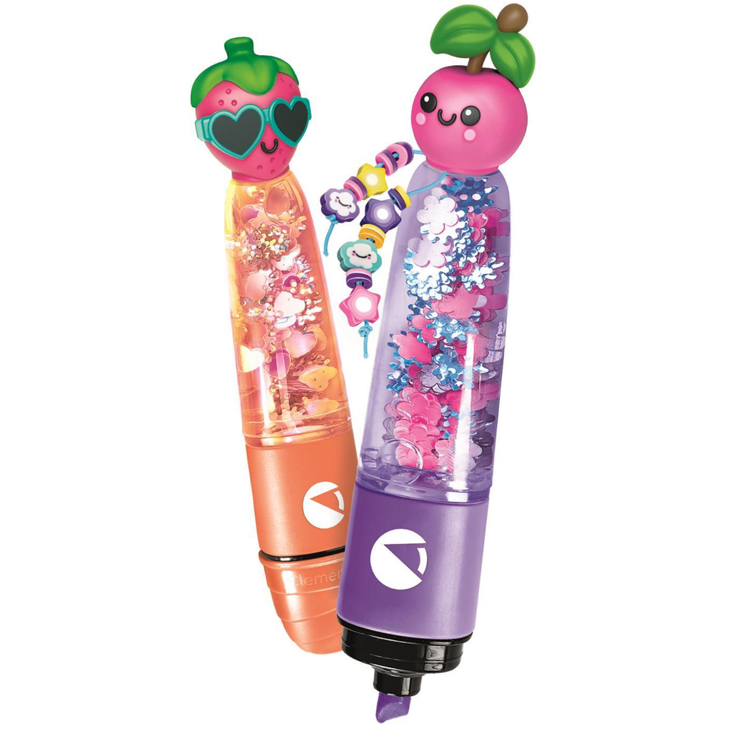 Setul Idea! pentru confecționarea evidențiatoarelor cu modele de fructe oferă copilului tău o activitate veselă și creativă. Cu acest set special poate realiza propriile evidențiatoare cu imprimeu de fructe, pe care le poate personaliza cu ornamente colorate, sclipitoare și figurine drăguțe. În timpul creației își dezvoltă îndemânarea manuală și creativitatea, în timp ce se familiarizează jucăuș cu lumea culorilor și a formelor. Evidențiatoarele create de copil fac desenul și învățarea mai plăcute, astfel că este o alegere atât distractivă, cât și practică.