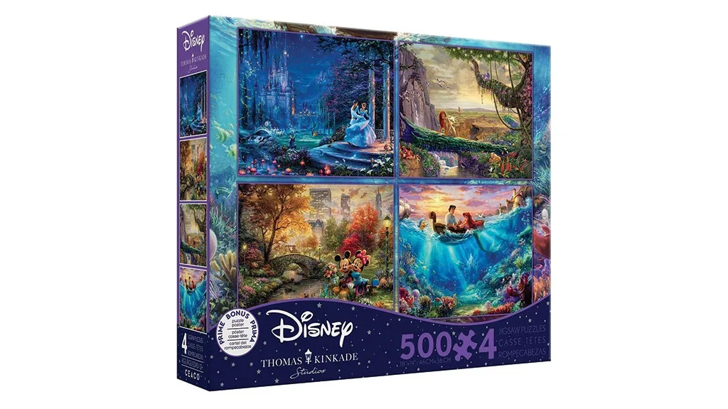 Ce poate fi mai bun decât un puzzle? Patru într-unul! Acest set conține patru puzzle-uri de 500 de piese, inspirate de Cenușăreasa, Regele Leu, Mickey și Minnie, precum și Mica Sirenă.