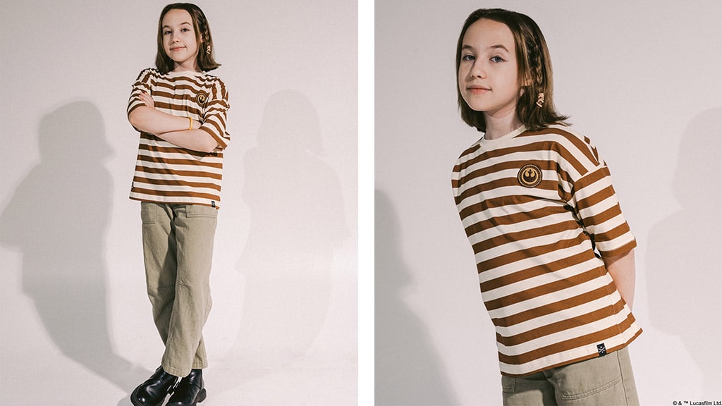 Copiii pot să-și arate acum latura lor rebelă cu trei stiluri diferite de tricouri. Pe tricoul Rebels of Alderaan Youth Color Block, sigla Alianței Rebelilor apare cu mândrie și vizibilitate printre copacii de pe Alderaan, în timp ce tricoul în dungi oferă purtătorului un stil mai discret, dar totuși spațial. Tricoul cu mânecă lungă Rebels Of Alderaan Youth este pur și simplu irezistibil pentru orice fan Grogu (adică Baby Yoda). Acest top confortabil strălucește în culorile unui Maestru Jedi și este decorat cu pietre strălucitoare, aducând un omagiu cauzei rebelilor. Inscripția „Construit pe speranță” de pe mânecă le amintește celor mici să îndrăznească să viseze măreț și să tindă spre stele. Aceste tricouri nu sunt doar stilate, ci transmit și un mesaj inspirațional fiecărui tânăr rebel!