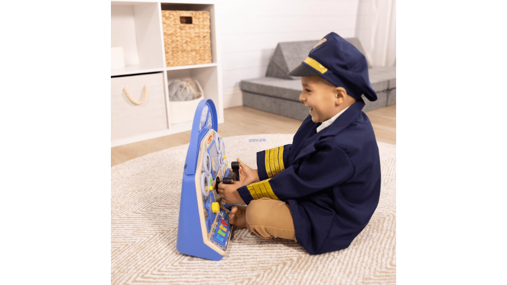Luând totul în considerare, copiii pot ridica timpul de joacă la noi înălțimi cu Melissa & Doug Jet Pilot Dashboard.Viitorii piloți se pot pregăti de decolare cu acest panou de instrumente interactiv, care include lumini, butoane, redare de sunete, un manetă de gaz cu patru poziții și multe altele. Copiii pot roti curbura volanului pentru a mișca un mini-avion pe un ecran rulabil.