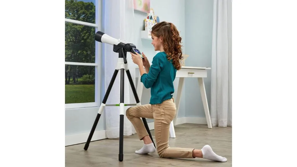 Copiii pot descoperi lumea din jurul lor cu o mărire de până la 110 ori cu ajutorul telescopului digital, pot vizualiza peste 100 de videoclipuri și imagini NASA și se pot juca pe ecranul de 2,4 inci. 5