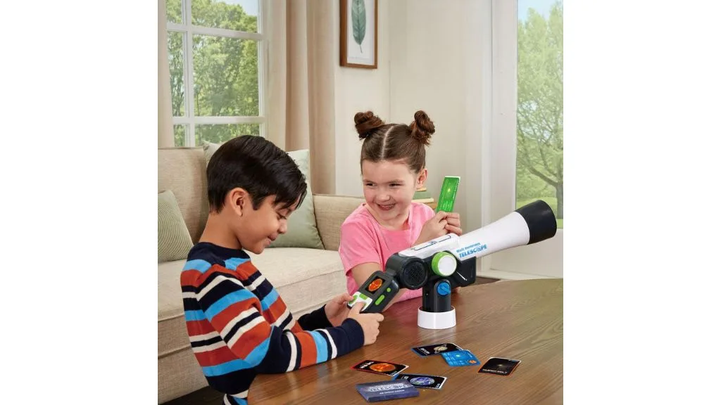 Copiii pot participa la o aventură magică dintr-o altă lume cu Telescopul Magic Adventures LeapFrog! Deși este un joc, telescopul a fost proiectat și funcționează similar cu telescoapele reale.