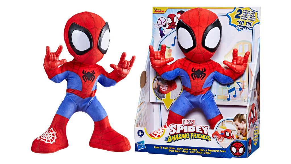 În această vară, părinții pot adăuga la colecția de jucării pe Spidey Dansatorul și Cățăratul. Copiii pot dansa cu plușul interactiv de 25 cm și pot auzi expresii amuzante, cum ar fi „Hai să facem dansul Spidey!” și „Mergi, pânză, mergi!”, precum și melodii super. În total, conține 20 de expresii și sunete, plus două melodii pe care copiii le vor recunoaște din emisiune! Dacă copiii au nevoie de puțină încurajare, pot dansa cu videoclipul muzical „Hai să facem Spidey!” care va debuta în această vară.