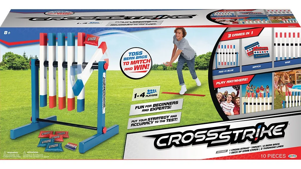 Acest nou joc de aruncat cu saci de fasole pune la încercare precizia și abilitățile strategice ale jucătorilor, în timp ce aceștia trebuie să arunce sacii de fasole astfel încât plăcile să se întoarcă pe culorile potrivite. Există mai multe moduri de joc, iar setul conține și un pachet de cărți pentru variante alternative de joc, care ajută la dezvoltarea unor stiluri de joc unice. Jocul Cross Strike poate fi jucat atât cu prietenii, cât și cu familia, oferind de fiecare dată o experiență nouă. Jocul dezvoltă dexteritatea, concentrarea și munca în echipă, oferind în același timp o provocare distractivă pentru toate vârstele.
