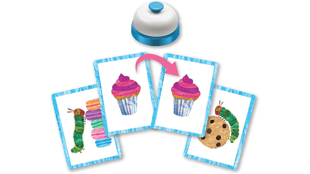 În acest joc, cei mici pot exersa asocierea și memorarea, în timp ce se bucură de culorile vii cunoscute din cartea clasică de povești a lui Eric Carle. Când jucătorii găsesc o pereche, sună clopoțelul și exclamă: Delicios!, pentru a sărbători succesul lor. La sfârșitul jocului, câștigă jucătorul care a găsit cele mai multe perechi!Stilul poveștii și personajele din colecția de cărți The Very Hungry Caterpillar fac parte de mult timp din partea distractivă a timpului de joacă. Familiile nu se pot sătura de povestea drăguță și de ilustrațiile artistice, așa că acest joc de potrivire este o modalitate excelentă de a continua tradiția de familie. Copiii și părinții lor se pot bucura împreună de joc, în timp ce își dezvoltă memoria și capacitatea de observație. În timpul jocului, copiii se pot întâlni din nou și din nou cu personajele iubite, ceea ce le aprofundează și mai mult dragostea pentru carte. Acest joc nu este doar distractiv, ci și educativ, deoarece ajută copiii să recunoască culorile, formele și modelele. Pentru familii, aceasta este o oportunitate excelentă de a petrece timp de calitate împreună, în timp ce copiii învață și se dezvoltă.