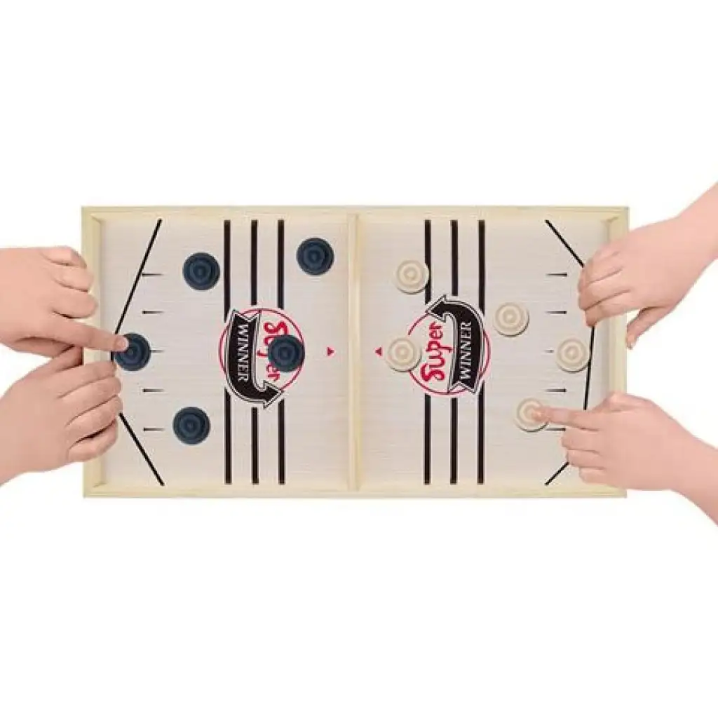 Sling Puck este un joc de îndemânare mai puțin cunoscut la noi, deși datorită simplității și rapidității sale este o alegere excelentă și, în același timp, o relaxare grozavă. Tabla de joc cu cadru de lemn este împărțită în două părți, cu un separator cu o mică poartă în mijloc. Ambii jucători încep jocul cu același număr de discuri, pe care trebuie să le tragă pe partea adversarului prin poarta mică folosind o bandă elastică întinsă pe propriul teren de joc. Jocul este câștigat de cel care rămâne primul fără discuri pe terenul său, inclusiv cele deja trase de adversar. Sling Puck este un joc de petrecere excelent care dezvoltă coordonarea ochi-mână și îndemânarea, iar competiții serioase sunt organizate frecvent.