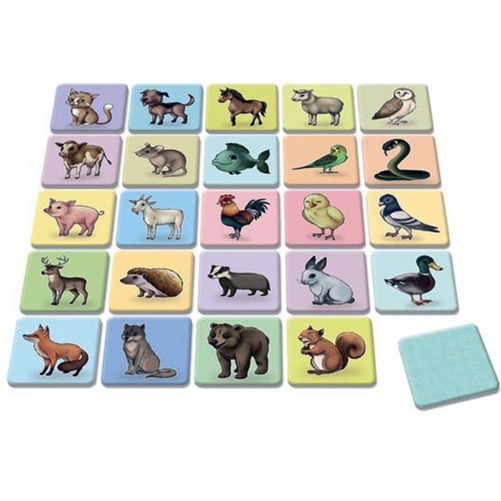 Jocul de memorie cu animale este un joc educativ durabil, dar totodată captivant, care ajută într-un mod jucăuș la învățarea și dezvoltarea copilului tău. Cartonașele vesele și colorate cu animale captează imediat atenția, în timp ce găsirea perechilor reprezintă o adevărată provocare și o sursă de satisfacție. În timpul jocului, copilul tău își dezvoltă fără să-și dea seama memoria, concentrarea și capacitatea de observație, în timp ce învață să respecte regulile și să aștepte cu răbdare.