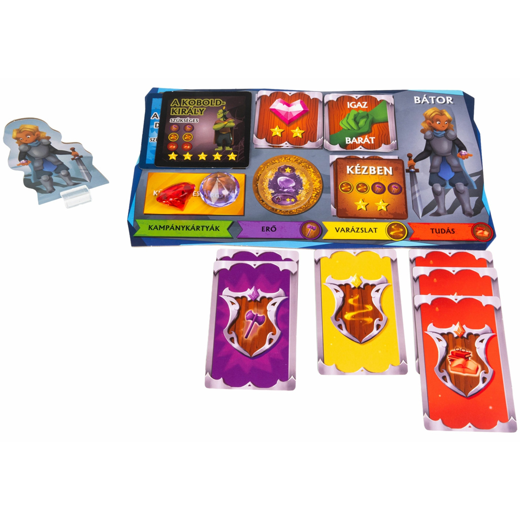 Jocul de societate Kölyökkalandok vă poartă într-o lume fantasy fermecată, unde copiii se pot transforma în adevărați eroi. Dacă vrei un joc care nu doar distrează, ci și dezvoltă imaginația copiilor și abilitățile lor de colaborare, acesta este o alegere excelentă. Tabla de joc frumos ilustrată, figurinele detaliate ale personajelor și cărțile colorate contribuie toate la o experiență de joacă cu adevărat captivantă.