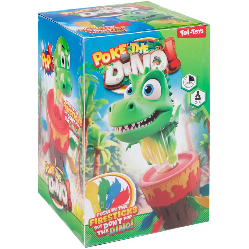 Scopul jocului este să introduceți cu grijă bețele colorate cu țepi în lateralul vulcanului – dar fiți atenți, pentru că dacă alegeți locul greșit, dinozaurul va sări brusc din locul lui! Acest moment neașteptat de tip „POP!” va stârni mereu râsete și va crește emoția jocului. O rundă durează foarte puțin, deci este ideal și pentru o provocare rapidă și distractivă, dar jocul poate fi repetat de oricâte ori, fără să devină plictisitor.
