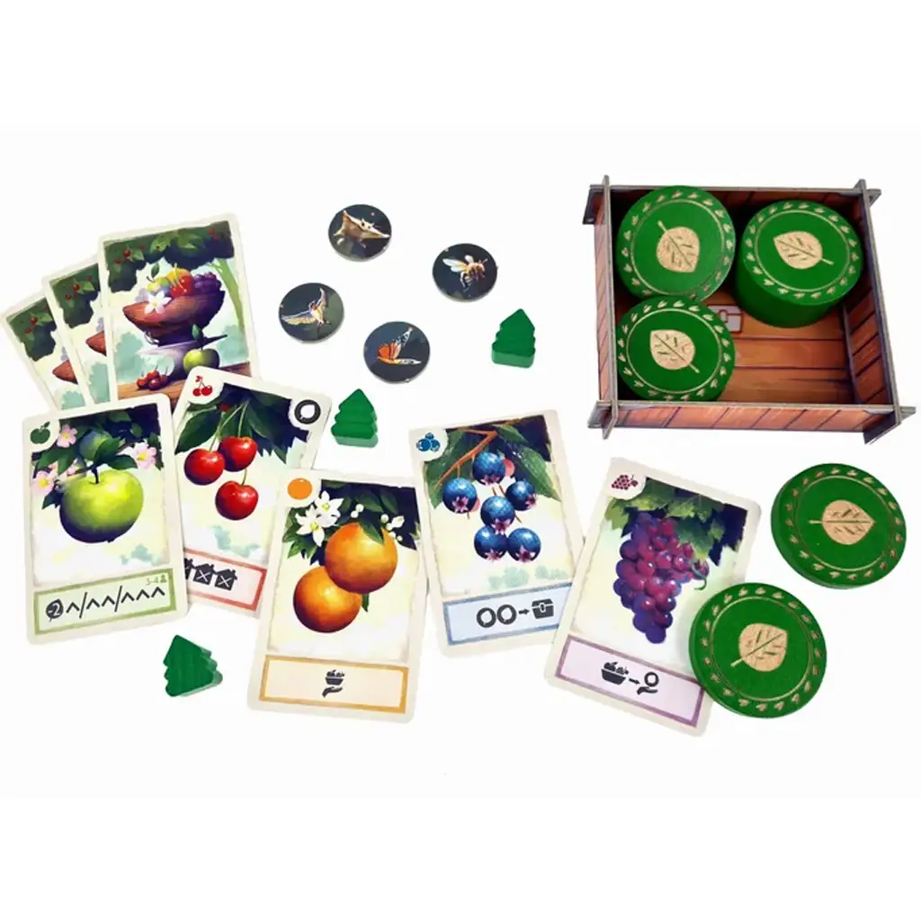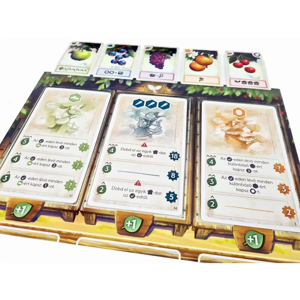 Cărțile de fructe vândute oferă abilități speciale, de exemplu, poți colecta mai mulți bani sau poți efectua acțiuni speciale. Trebuie să fii atent și la gestionarea monedelor: banii obținuți imediat trebuie cheltuiți în runda respectivă, în timp ce sumele plasate în cufăr pot fi păstrate pentru mai târziu. Îți poți dezvolta clădirile pe niveluri, iar fiecare clădire complet construită valorează puncte bonus speciale la sfârșitul jocului.