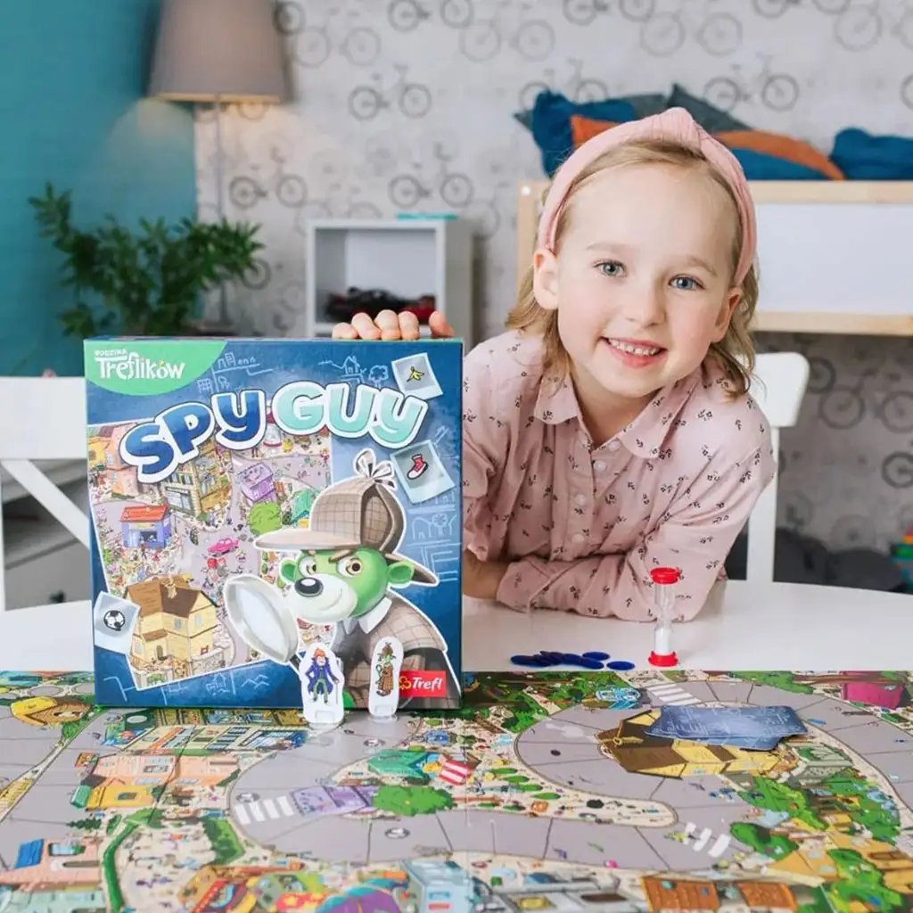 Fii tu Spy Guy, celebrul superdetectiv, și salvează orașul Trefliks de la ghearele genialului hoț, dr. Moritz, cu ajutorul jocului de societate Trefl nou! Jocul oferă o provocare cooperativă palpitantă, unde nu doar viteza, dar și munca în echipă și atenția la detalii sunt esențiale. Creat pentru detectivi de 5 ani și mai mari, participanții trebuie să descopere împreună misterul, căutând indicii pe harta detaliată a orașului. Pe parcursul jocului, copiii își dezvoltă abilitățile de observație, gândirea logică și înțeleg importanța colaborării. Pe măsură ce combinați informațiile deasupra hărții, începe o cursă palpitantă contra timpului pentru a prinde pe dr. Moritz înainte ca acesta să comită o nouă faptă rea. Jocul de societate Spy Guy oferă distracție excelentă pentru întreaga familie, aducând atmosfera unei adevărate povești polițiste în casa voastră.