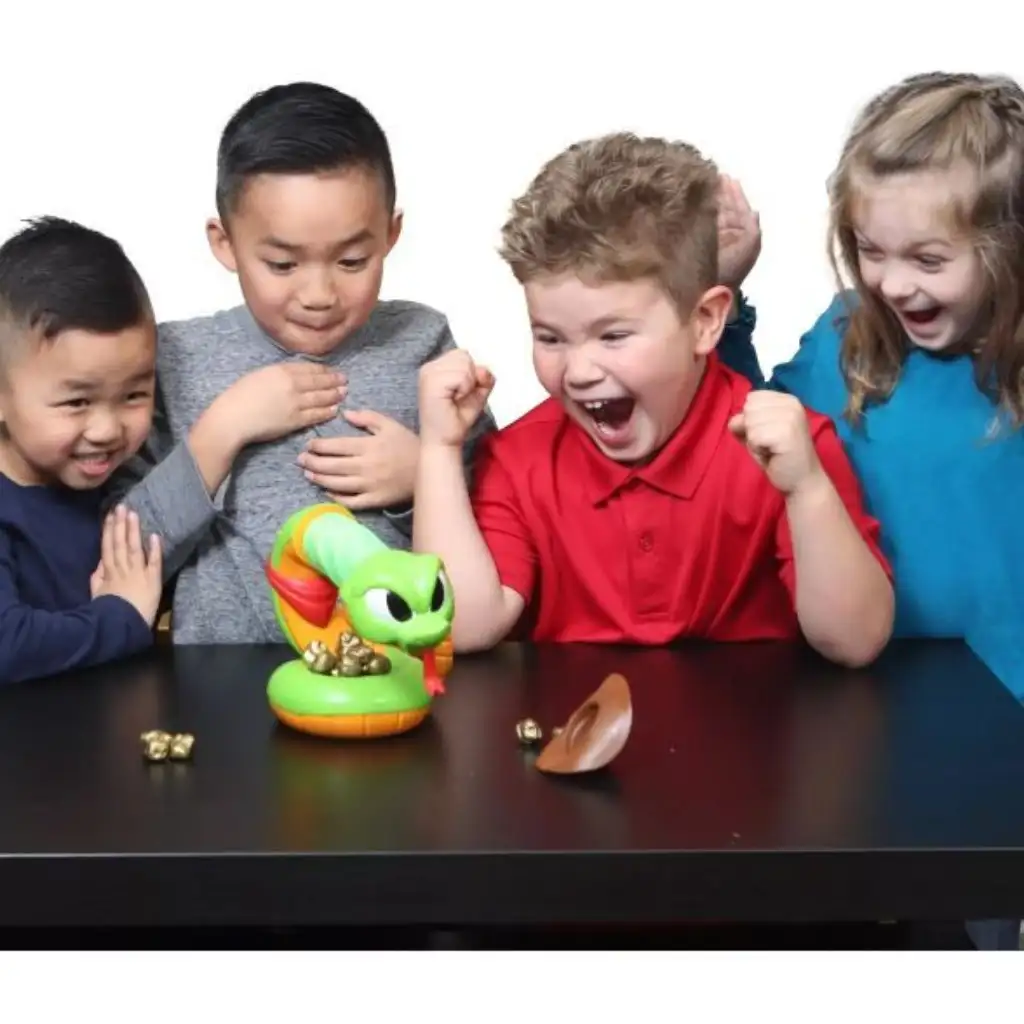 Aventura Șarpelui este un joc de societate captivant și distractiv, în care jucătorii încearcă să fure comoara de la șarpe în rolul de căutători de aur. Scopul este să aduni cât mai multe pepite de aur, dar fii atent, deoarece șarpele poate mușca vânătorul de comori din când în când! Dacă se întâmplă acest lucru, jucătorul trebuie să returneze jumătate din aurul său șarpelui. Datorită regulilor simple de joc, chiar și copiii mai mici pot juca cu ușurință, dar ritmul rapid și emoția de a obține comoara oferă distracție excelentă pentru întreaga familie.