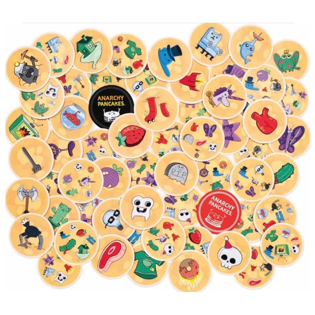 Jocul de cărți Clătita Anarhistă cu siguranță va face inimile să bată mai repede! Această creație ingenioasă a creatorilor Exploding Kittens și Dobble este un joc de societate rapid și portabil, în care trebuie să găsești elementele comune cu ceilalți jucători pe clătite decorate cu imagini amuzante, în timp ce toate cărțile sunt în joc simultan. Poți găsi personaje amuzante în fiecare colț al mesei, iar scopul este să scapi cât mai repede de propriile clătite, lipindu-le de ale altora, provocând confuzie celorlalți. Îți testezi atenția și viteza pentru o bucată de unt și, dacă ești norocos, poți obține două bucăți de unt pentru a câștiga!