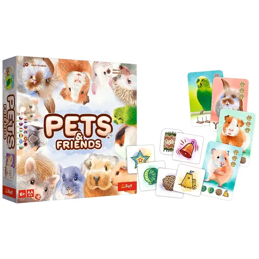 Jocul de societate Trefl - Animăluțe și prietenii lor este o aventură drăguță și distractivă în lumea animăluțelor, unde copiii pot avea grijă de animalele lor de companie preferate, fie că este vorba de un hamster, cobai, iepuraș sau chiar papagal. Scopul acestui joc este de a asigura fiecărui animăluț accesoriile necesare pentru fericire, cum ar fi jucării, gustări delicioase și accesorii. Pe parcursul jocului, jucătorii trebuie să colecteze cu atenție cărțile și să decidă cu pricepere de ce are nevoie fiecare animăluț pentru a fi cât mai fericit posibil.