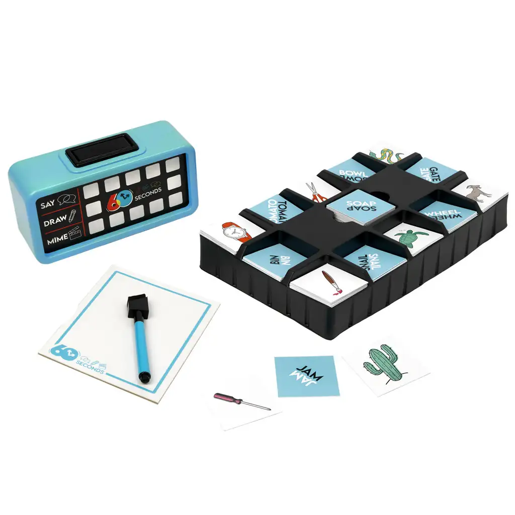 Jocul de societate - 60 de secunde este un joc în care creativitatea și competiția contra timpului sunt în centrul atenției. Este o alegere ideală pentru întâlniri cu prietenii și familia, garantat plin de tensiune, deoarece jucătorii au la dispoziție doar 60 de secunde pentru a-și conduce echipa către soluția corectă.