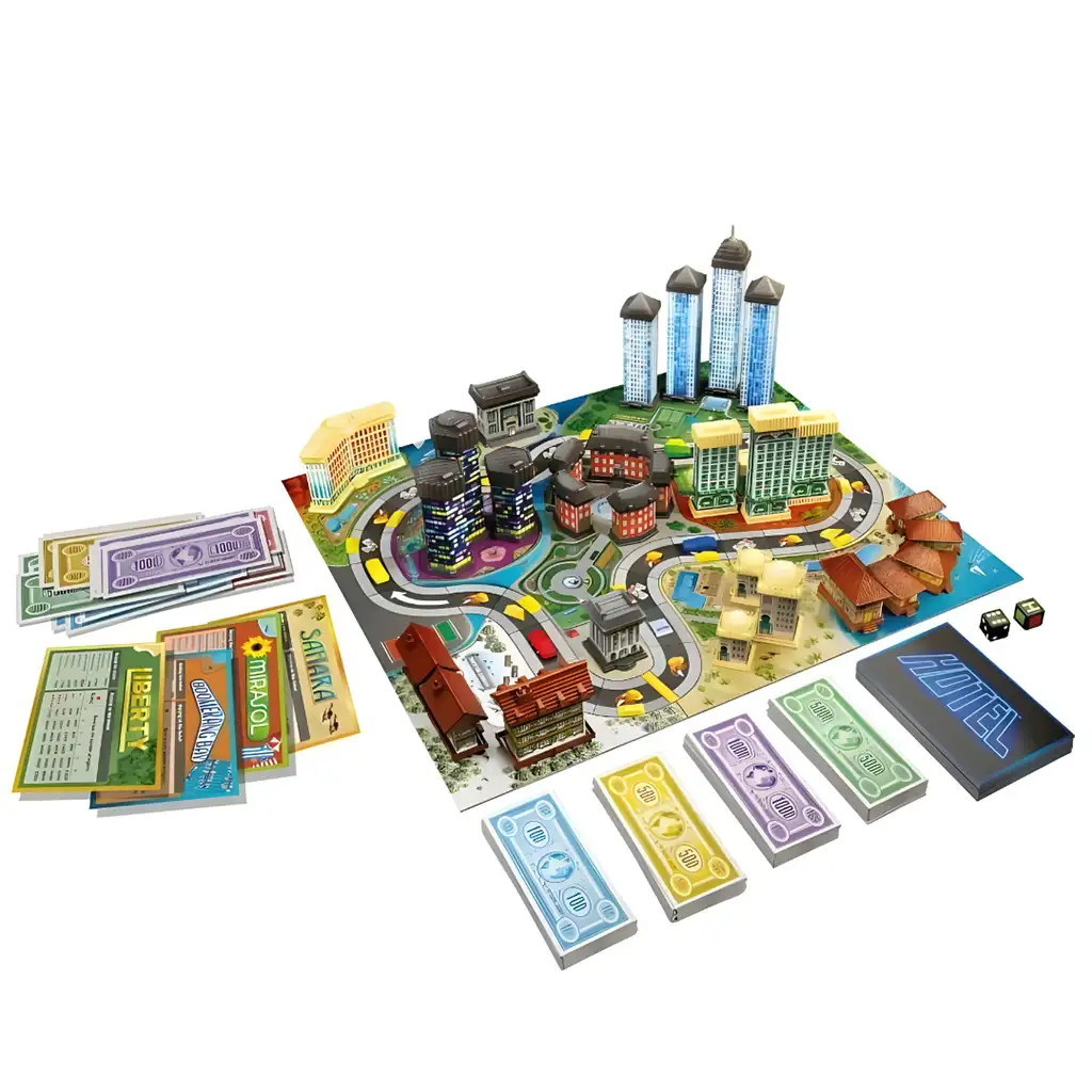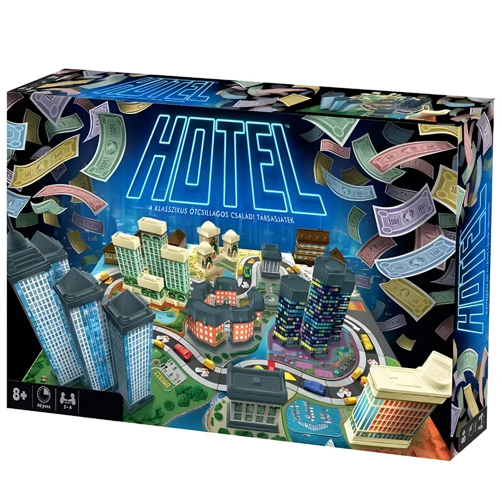 Jocul de societate Hotel îi conduce pe jucători în lumea provocatoare a antreprenorilor bogați. În acest joc clasic, acum disponibil într-un nou ambalaj, jucătorii devin cei mai bogați investitori din lume. Ei cumpără terenuri, construiesc hoteluri și parcuri de agrement, în timp ce concurează cu rivalii pentru a obține cât mai mult profit.