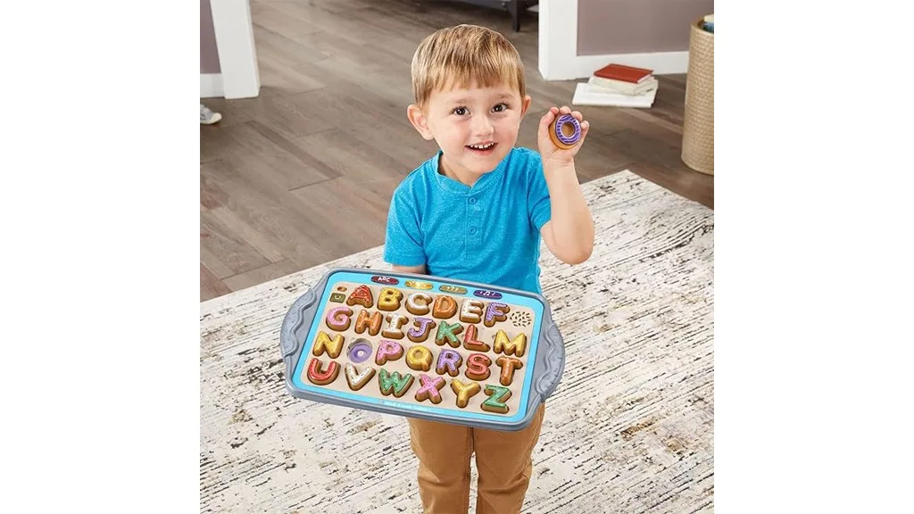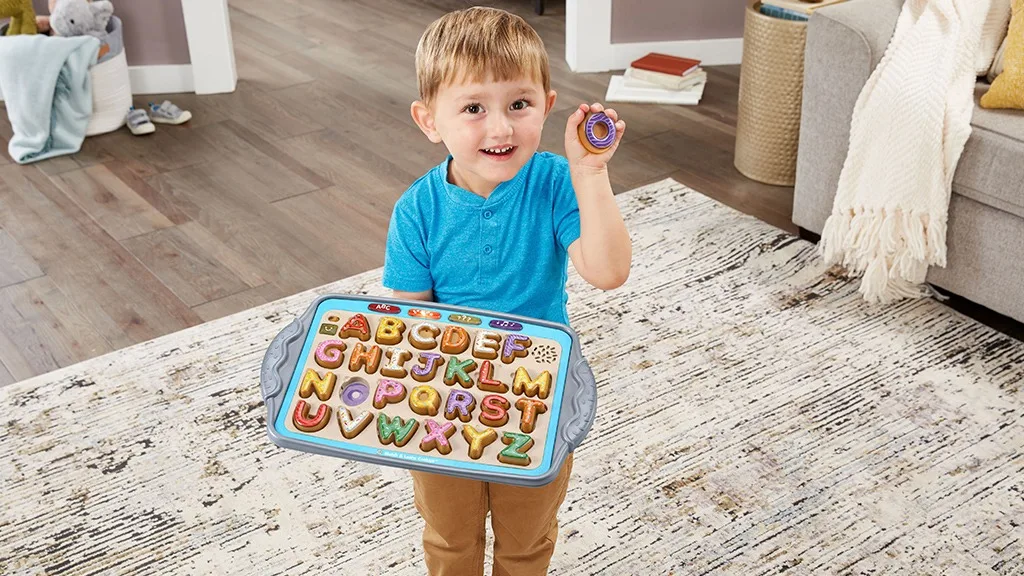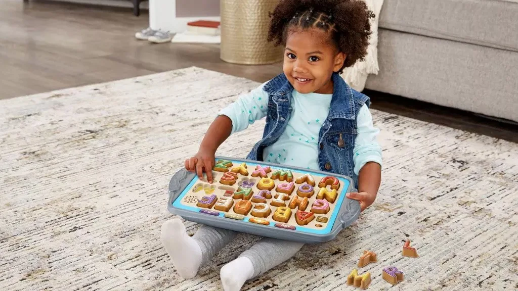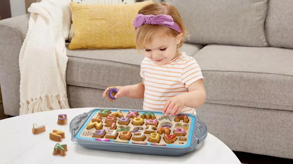 Chiar dacă tava este prea mare pentru a fi adusă într-un restaurant sau într-o sală de așteptare, poate servi ușor ca joc de mașină. Odată ce prăjiturile sunt puse, sunt destul de stabile și pot supraviețui unor trepidații serioase fără să cadă. Totuși, nu există o modalitate de a stoca piesele, așa că asigură-te că ai un sac sau o cutie desemnată pentru prăjiturile de artă atunci când nu sunt pe tavă.Deși jocul este promovat pentru copii de 2 ani și mai mari, chiar și cei mai mici pot beneficia de timpul petrecut jucându-se cu Match and Learn Cookies. Poate că încă nu înțeleg ce spun sau înseamnă înregistrările, dar pot exersa plasarea obiectelor în decupajul corespunzător, se pot ocupa de muzică și pot recunoaște culorile potrivite. Când plasează cookie-urile pe tavă, cei mici pot folosi abilitățile lor motorii fine în creștere pentru a apăsa pe cookie-uri și a asculta sunetele următoare.Dacă muzica și cuvântul "cookie" devin prea mult pentru tine, poți alege dintre trei moduri de volum: tăcut, tare și și mai tare. Copiii pot asambla literele, formele și culorile în liniște sau pot inventa propriile jocuri și pot citi fiecare literă fără ajutorul sunetului. Încearcă-te pe tine și pe copilul tău cerându-le să scrie diferite cuvinte pe tava fără ghidul audio!Dacă copilul tău nu îi place să încerce lucruri noi, poate că aceste prăjituri false cu banane, mere și cocos îi vor convinge! Dacă nu sunt prea entuziasmați de învățarea lucrurilor noi, acesta este, de asemenea, un mod excelent de a le învăța diferite lucruri în timp ce se distrează bine.Micuții cofetari pot face de parcă ar pregăti și coace 26 de prăjituri delicioase în formă de litere. Apasă pe prăjitura colorată în tavă pentru a auzi numele literelor, sunetele literelor, culorile și gusturile. Acum tu ești bucătarul! Ia prăjiturile de pe tavă și servește delicatesele dulci prietenilor și familiei. Fii atent să auzi care prăjitură trebuie coaptă...