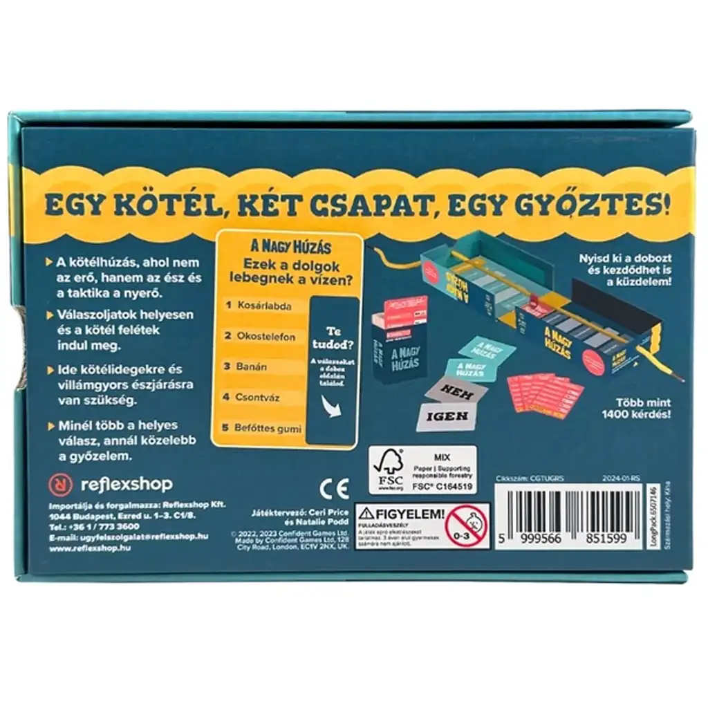 -Conținutul cutiei: peste 1400 de cărți de întrebări, cărți DA/NU, tablă de joc cu frânghie