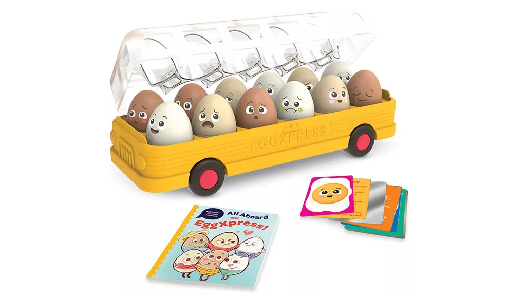 Copiii pot exersa abilitățile de potrivire, inteligența social-emoțională și multe altele cu aceste 12 ouă balansoare, care au forme și culori în interior și expresii faciale pe exterior. Setul include o carte cu oglindă, o carte de povești și multe altele.