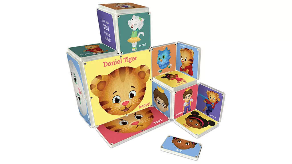 Acest set de construcție magnetic interactiv încurajează învățarea socio-emoțională cu ajutorul lui Daniel Tiger și al prietenilor săi. Copiii pot învăța să-și recunoască emoțiile, inclusiv faptul că pot simți mai multe emoții în același timp.Acest set tactil STEM conține o carte de povești și materiale conductive de modelat. Copiii folosesc plastilina și cartea pentru a crea un circuit emoțional, care le arată cum reacțiile corpului nostru sunt legate de emoțiile noastre.