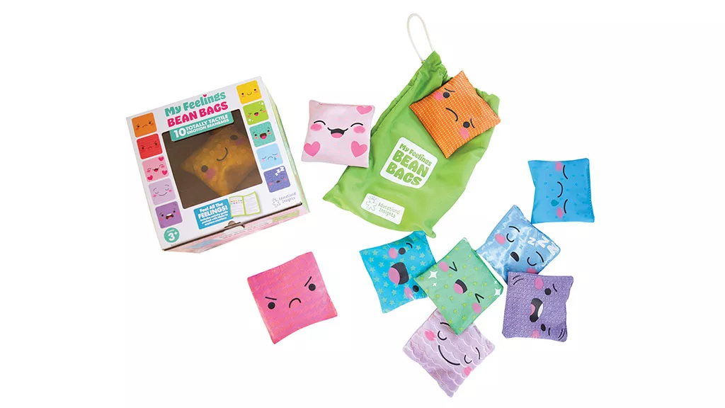 Aceste saci de fasole tangibili încurajează copiii să își descopere emoțiile și să își exprime sentimentele. Pe lângă jocurile senzoriale, aceștia ajută la dezvoltarea stimei de sine. Sacii de fasole includ o geantă cu șnur și un ghid de activități.