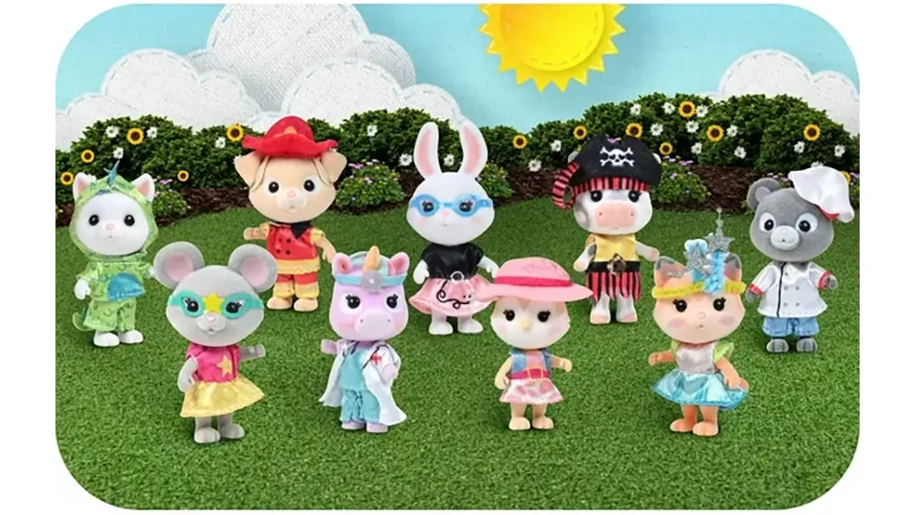 Fiecare figură mobilă și catifelată poartă un costum viu colorat și detașabil, care oferă posibilitatea unui joc de modă distractiv. Acești prieteni adoră să se costumeze: Misty visează să devină doctor, în timp ce Shadow se imaginează bucătar, iar Calvin pompier. Lulu își împărtășește cele mai bune mișcări de pirat cu supereroul Pippa, în timp ce Leo, dinozaurul, răcnește.