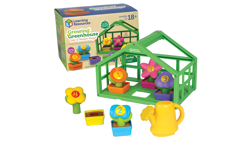 Copiii pot exersa abilitățile de recunoaștere a culorilor și de numărare în timp ce sortează, asociază și numără petalele florilor, precum și identifică staminele numerotate. Totul se poate depozita în seră, astfel încât să se poată juca și în deplasare. Setul include o stropitoare funcțională și un ghid de activități.