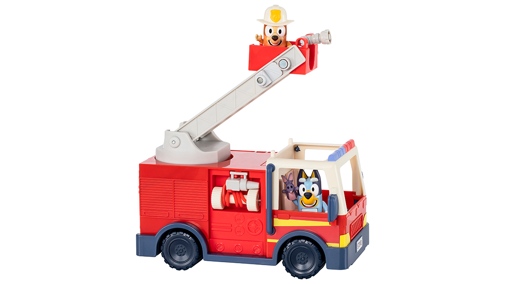 Acest set de jucării camion include o scară extensibilă încorporată, pe care figura Bingo poate fi plasată în vârf și se rotește în toate direcțiile; un furtun de pompieri retractabil; o foaie de autocolante tematice; și figurinele pompierului Bingo, Bluey și Bob Bilby.