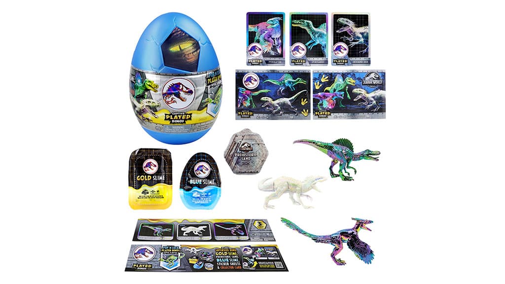 Copiii pot sparge oul pentru a găsi înăuntru un dinozaur blindat Pop N Lock uriaș, asamblabil, trei tipuri de plastilină, un ghid pentru colecționari, o carte de colecție holografică și stickere. Acest set oferă surprize interesante, dezvoltând în același timp creativitatea și abilitățile motorii fine. Copiii nu doar se pot juca cu dinozaurul, ci îl pot și asambla singuri, ceea ce face jocul și mai captivant. Cu ajutorul stickere-lor incluse pot personaliza figurina, iar cartea și ghidul pentru colecționari îi ajută să afle și mai multe despre dinozauri și despre celelalte personaje din serie.