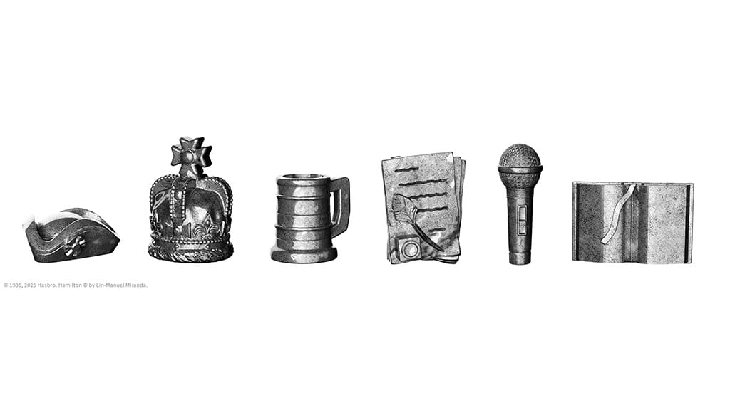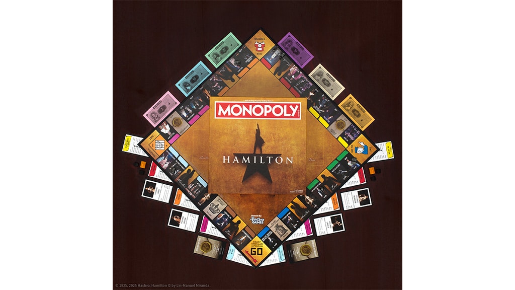 Această ediție specială de Monopoly a fost creată pentru a sărbători cea de-a 10-a aniversare a musicalului, în care răsună melodii iconice precum „My Shot”, „The Schuyler Sisters” și „You’ll Be Back”. Copiii își pot lua prietenii alături și pot călători pe tabla de joc cu șase pioni unici, printre care se regăsesc obiecte bine cunoscute, cum ar fi un microfon, o carte sau o coroană. Jucătorii nu vor fi niciodată mulțumiți până nu colectează chirii, nu negociază schimburi și nu se confruntă cu diverse obstacole, precum taxe, dueluri sau scandaluri politice. Această ediție este alegerea perfectă pentru orice fan Monopoly și al musicalurilor, care dorește să trăiască magia teatrului combinată cu emoția jocului de societate.