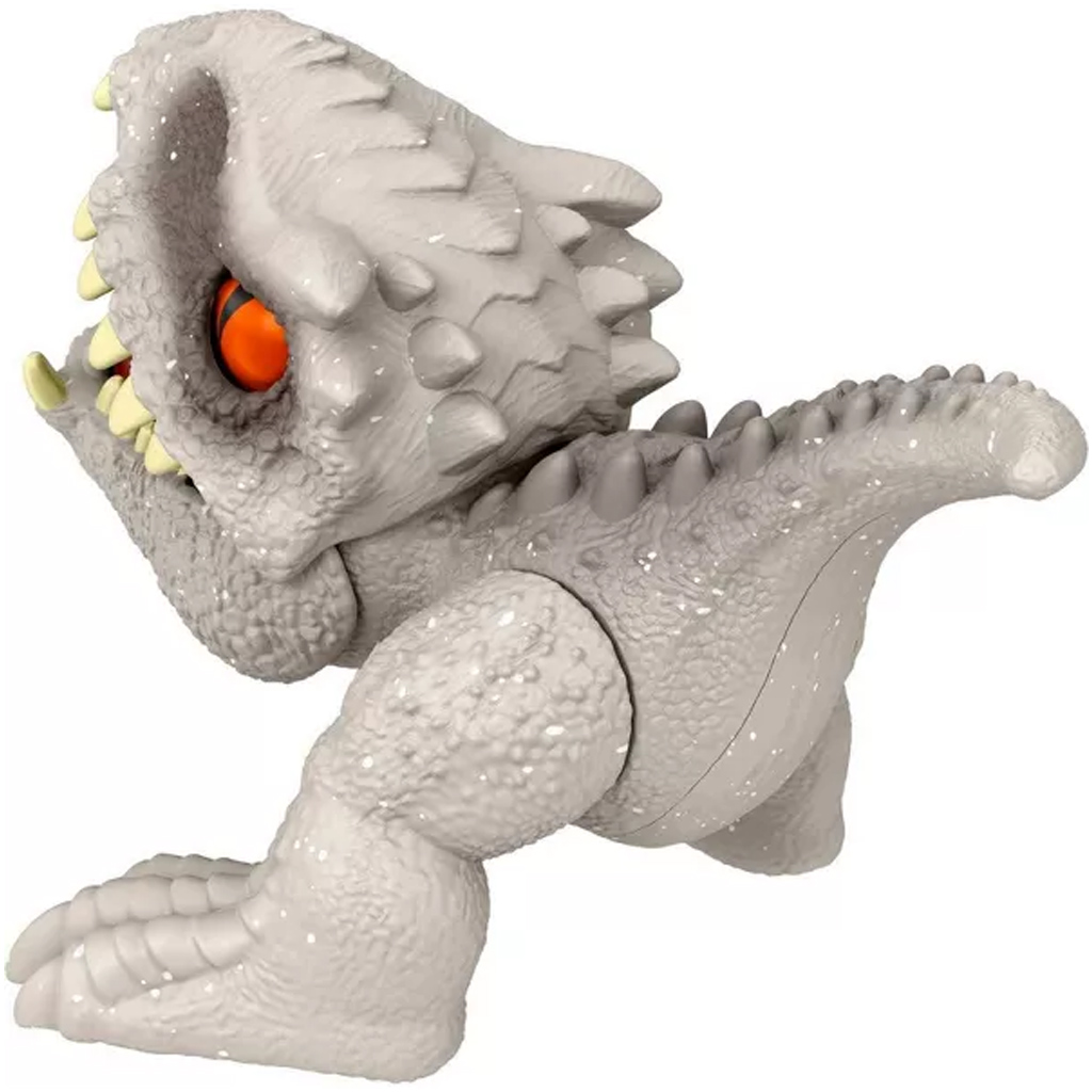 Puiul de Indominus Rex este o reprezentare stilată și detaliată a dinozaurului văzut în film. Are aproximativ 4 cm înălțime și 7 cm lungime, fiind ușor de manevrat de mâinile mici. Figurina oferă două poziții ușor de activat, cu care copiii pot începe jocuri interactive și aventuri.