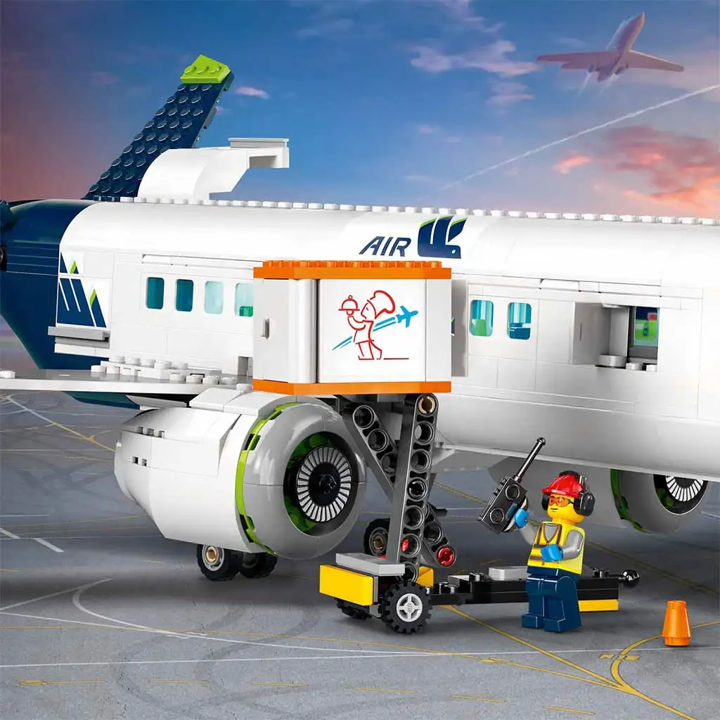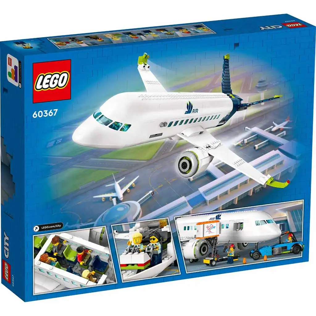 • Set de jocuri de construcție cu model de avion și vehicule de serviciu terestre - Setul LEGO® City Avion de pasageri (60367) cu caracteristici și funcții realiste