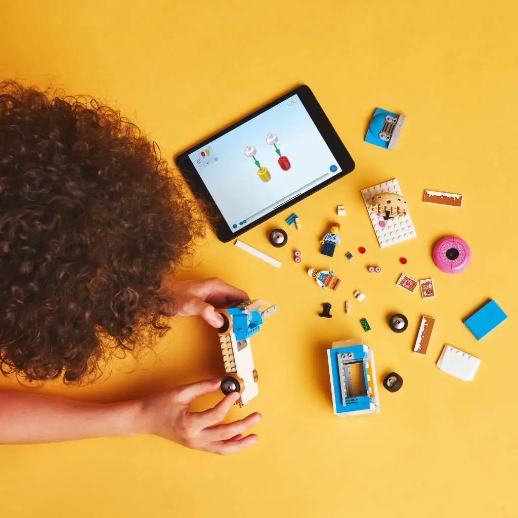 În cutie vei găsi și un ghid de construcție pentru a construi furgoneta mobilă cu gogoși LEGO City. Sau vizitează aplicația LEGO Builder, unde copiii pot descoperi și salva seturi, precum și să mărească, să rotească și să vizualizeze modelul din toate unghiurile în timpul construcției.