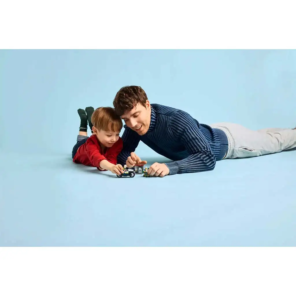 • Joacă cu motocicleta de poliție, de la 4 ani – Introdu-l pe micul tău erou în lumea jocului creativ cu setul LEGO® City Urmărire cu motocicleta poliției!