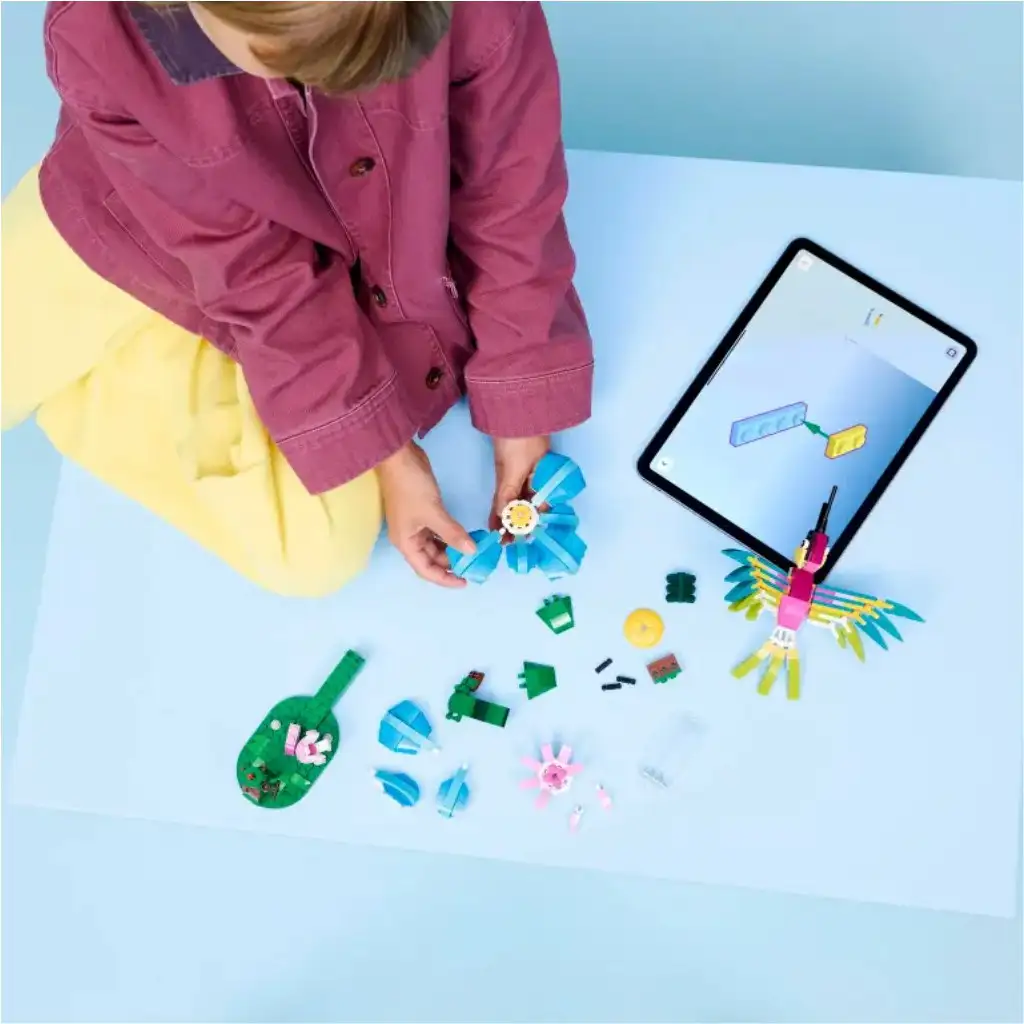 • ANIMALE LEGO® REGLABILE – Colibriul are o poziție dinamică de zbor și își poate mișca gâtul, aripile și coada, iar fluturele își poate mișca aripile.