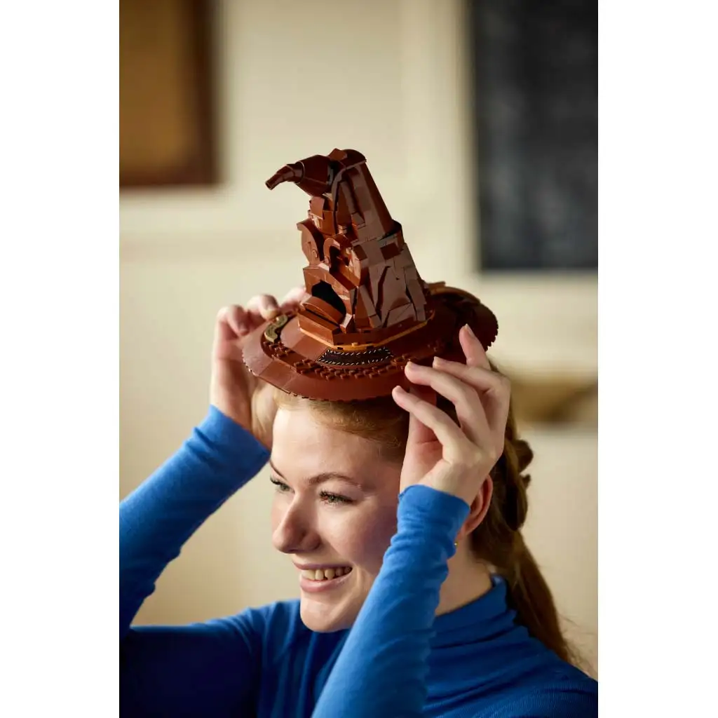 • Un cadou de aventură și tematic de film pentru adulți - Evadează în lumea magică a vrăjitorilor cu acest model LEGO® Harry Potter™ Roxfort™ Pălăria Selectoare™ vorbitoare... care chiar vorbește