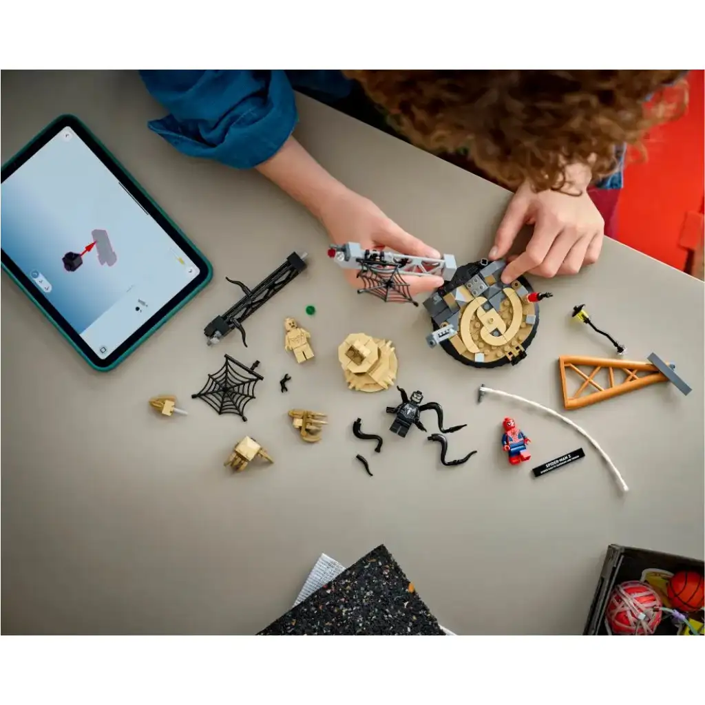 • 3 MINIFIGURINE LEGO® ǀ MARVEL – Acest set de construcție conține 3 minifigurine care luptă pe un șantier: Omul-Păianjen; Venom cu tentacule; Omul de Nisip cu o bază din cărămizi și un braț uriaș