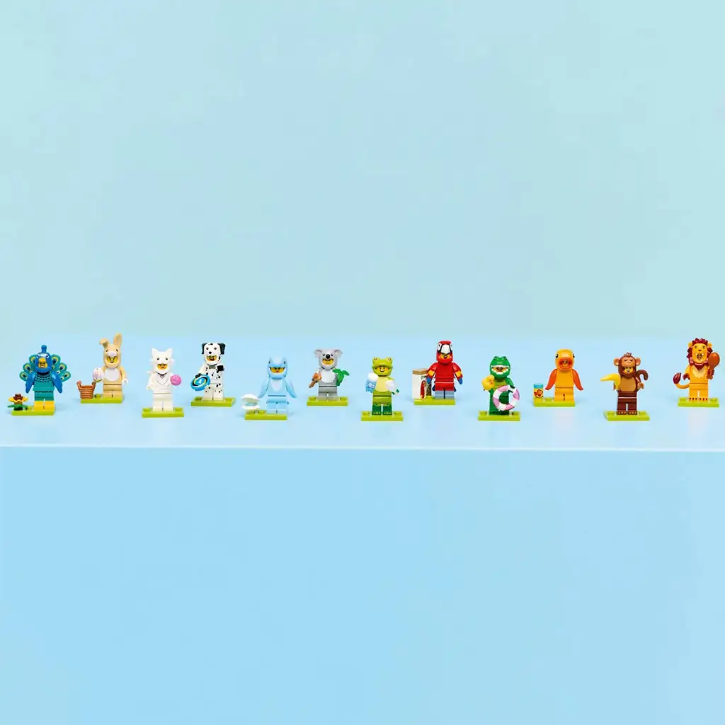 Fetele și băieții de 5 ani și mai mari pot interpreta povești distractive cu una dintre cele 12 figurine de colecționat din pachetele surpriză LEGO® Minifigurine, Animale, Seria 28 (71051). Fiecare pachet conține 1 minifigurină LEGO surpriză, iar în total se pot aduna 12 figurine de jucărie, inclusiv un papagal, leu, broască, crocodil, dalmațian, pește auriu, iepuraș drăgălaș, păun, pisică pufoasă, koala, delfin și animale de jucărie deghizate în maimuță. Fiecare dintre cele 12 minifigurine se află într-o cutie surpriză sigilată și vine cu cel puțin 1 accesoriu. Aceste jucării detaliate și adorabile cu animale pot extinde o colecție existentă, pot fi expuse cu mândrie sau pot fi folosite pentru a crea povești amuzante. Acest mic cadou este o atenție distractivă pentru copiii care iubesc animalele și natura, și îi inspiră să inventeze povești și să se joace ore întregi, singuri sau cu prietenii lor.