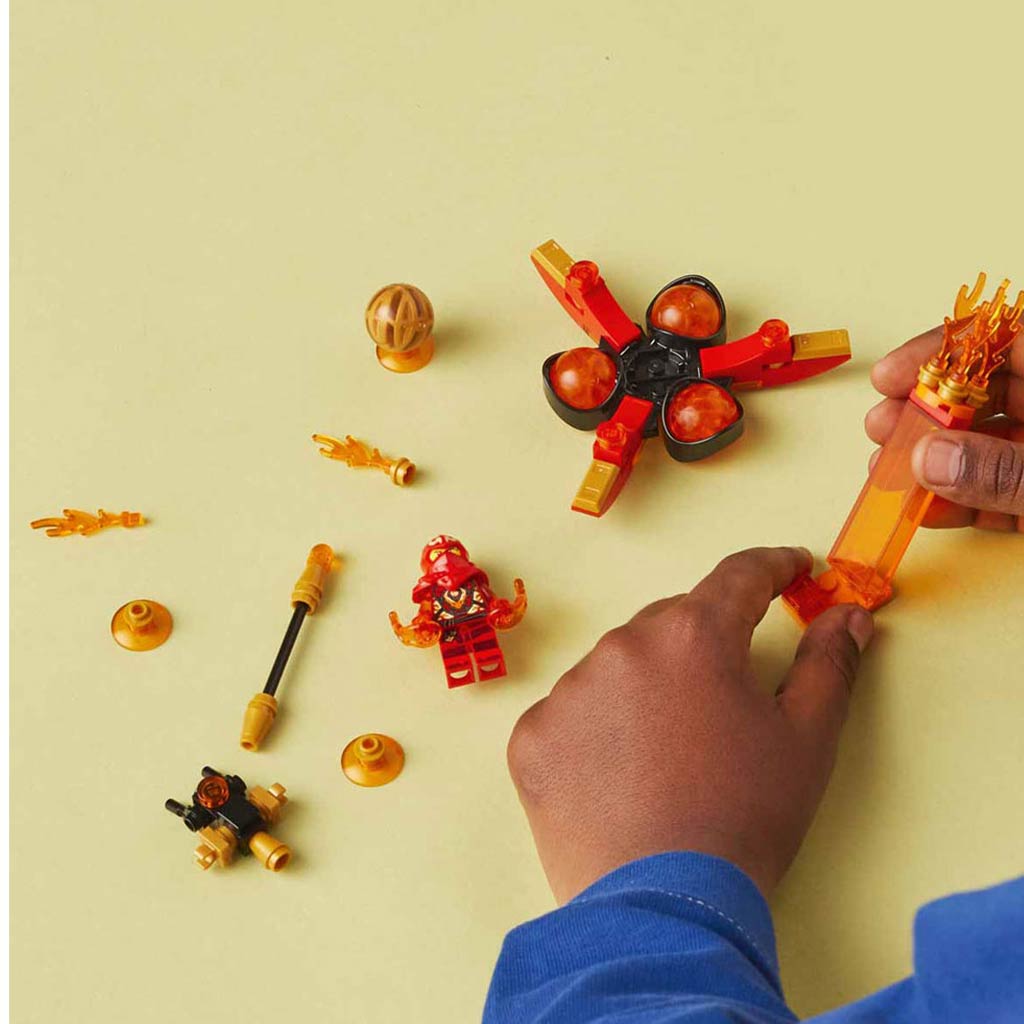 Copiii pot pune Kai Dragon Power în spinner, apoi pot lovi unul dintre brațe pentru a efectua un salt impresionant. Misiunea lui este să evite obstacolele în flăcări, să învingă figurina droidului Imperium și să obțină energia dragonului de aur colectabilă de pe vârful suportului de flăcări construit din cuburi. De asemenea, copiii vor găsi un element de dragon portocaliu, din care pot colecta încă 4 în diferite culori, din alte seturi NINJAGO®.