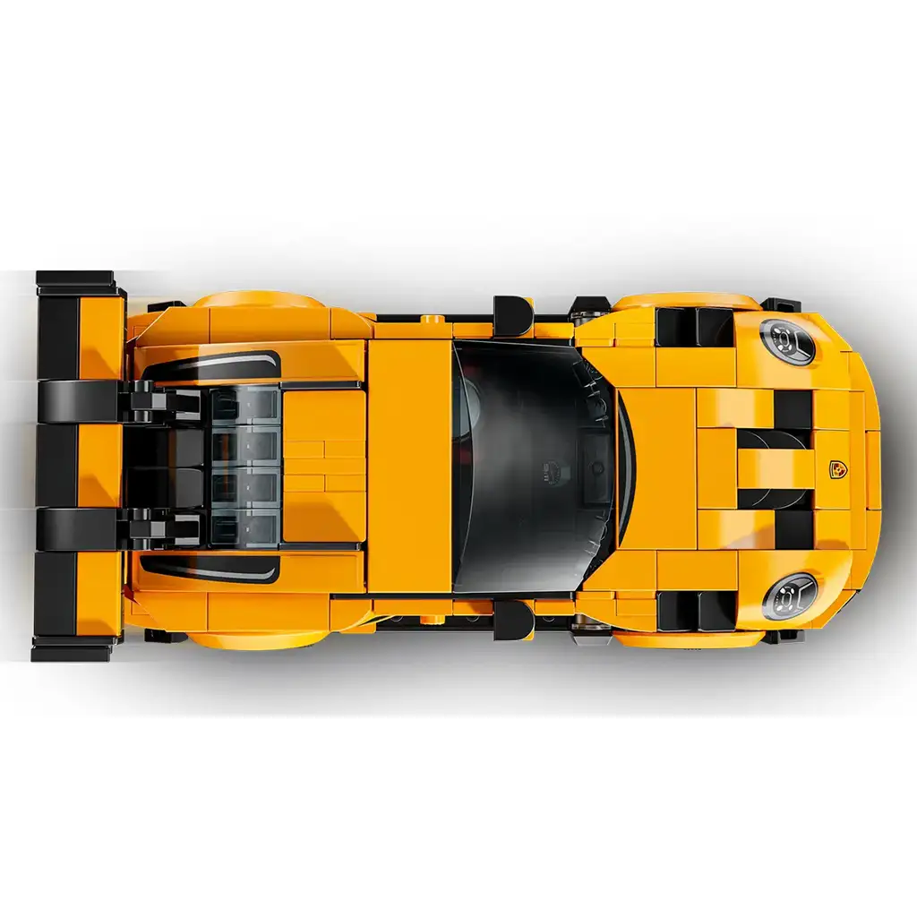 Acest model de jucărie Porsche 911 GT3 RS include celebrul eleron spate, prizele de aer de pe capotă, farurile distinctive și noile capace ornamentale pentru roți. Setul LEGO pentru mașini vine cu o minifigurină pilot, îmbrăcată într-o cască și într-un costum roșu Porsche Track Day Experience. Copiii pot așeza minifigurina la volan și pot interpreta propriile aventuri pe pista de curse.