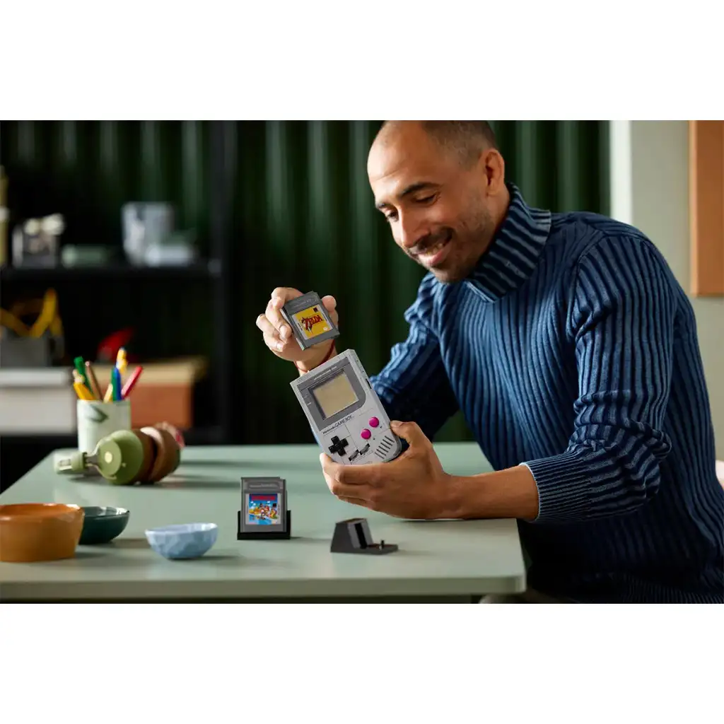 • Detalii autentice – Construieste butoanele +Control Pad, A, B, SELECT și START, butonul de contrast, reglajul volumului și slotul pentru Game Pak, apoi expune-ți Game Boy™-ul din piese LEGO pe suport!