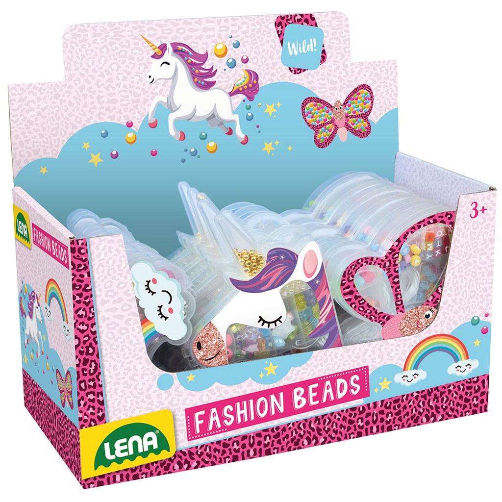 Setul LENA de mărgele colorate pentru înșirat este o alegere perfectă dacă copilul tău iubește să creeze și să confecționeze bijuterii unice. Cutia de depozitare veselă, în formă de unicorn, curcubeu sau fluture nu este doar practică, ci și foarte atrăgătoare, astfel că trezește interesul celor mici doar prin aspectul ei. În compartimentele cutiei se găsesc o mulțime de mărgele de diferite culori și forme, inclusiv piese cu litere, astfel încât copilul tău își poate crea chiar propriul nume sau cuvintele preferate. Jocul dezvoltă motricitatea fină, creativitatea și îndemânarea manuală, în timp ce îi captează atenția pentru mult timp. O alegere ideală pentru creații acasă sau cadou.