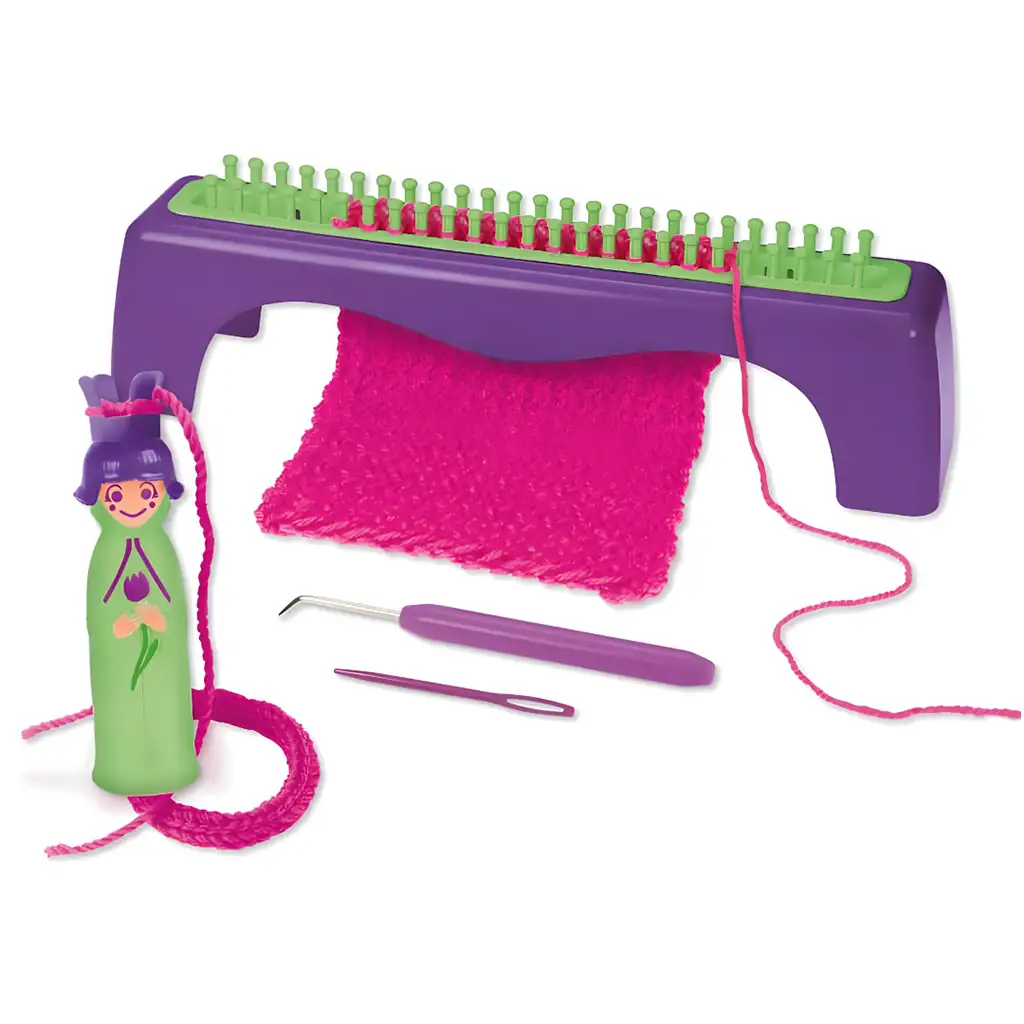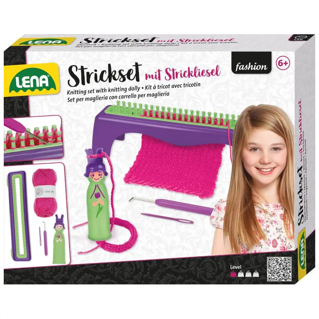 Setul de tricotat LENA® cu fire și croșetă oferă o experiență creativă completă pentru micii meșteșugari. Acest set complex include tot ce este necesar pentru a crea un proiect tricotat, inclusiv păturica de tricotat, suportul pentru tricotat, acul de tricotat, acul de plastic și firul de tricotat coordonat color.
