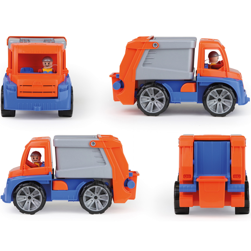 Camionul de gunoi LENA Truxx este un vehicul de jucărie robust, cu design realist, care apropie copiii de unul dintre personajele esențiale ale vieții urbane de zi cu zi. Datorită dimensiunii de 37 cm, este ideal pentru copiii mici, care îl pot împinge și manevra cu ușurință în timpul jocului.