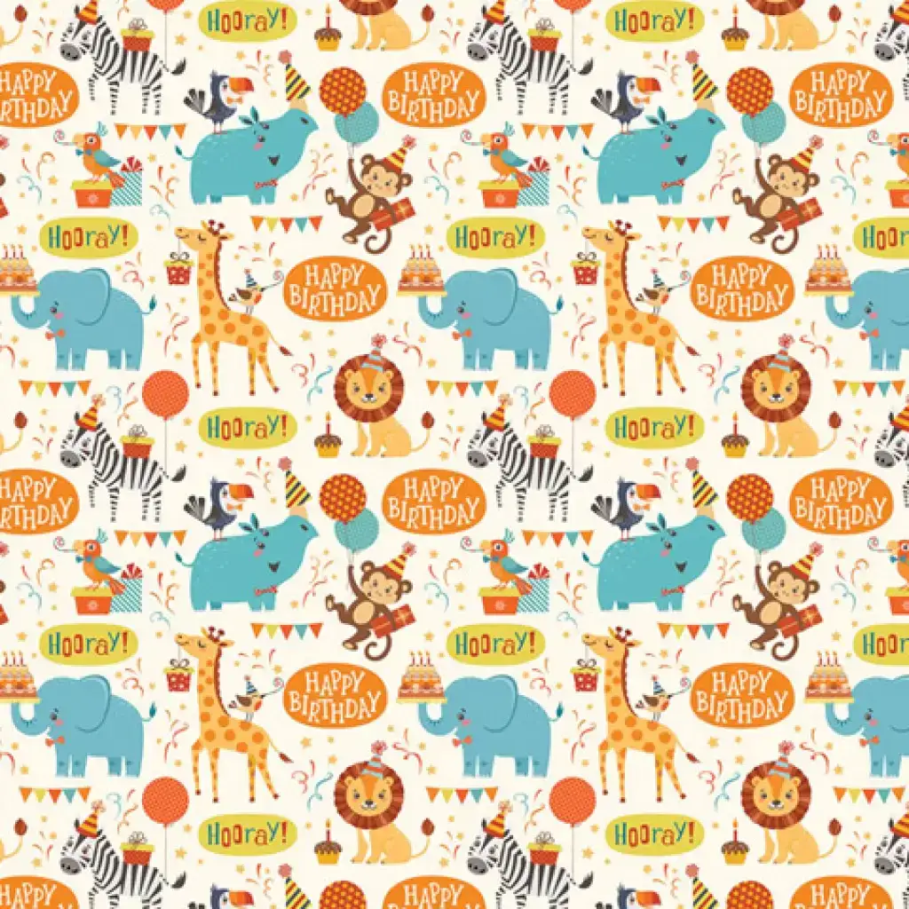 La mulți ani! Hârtie de ambalat cu animale din junglă 100x70cmLa mulți ani! Hârtie de ambalat cu animale din junglă 100x70cm