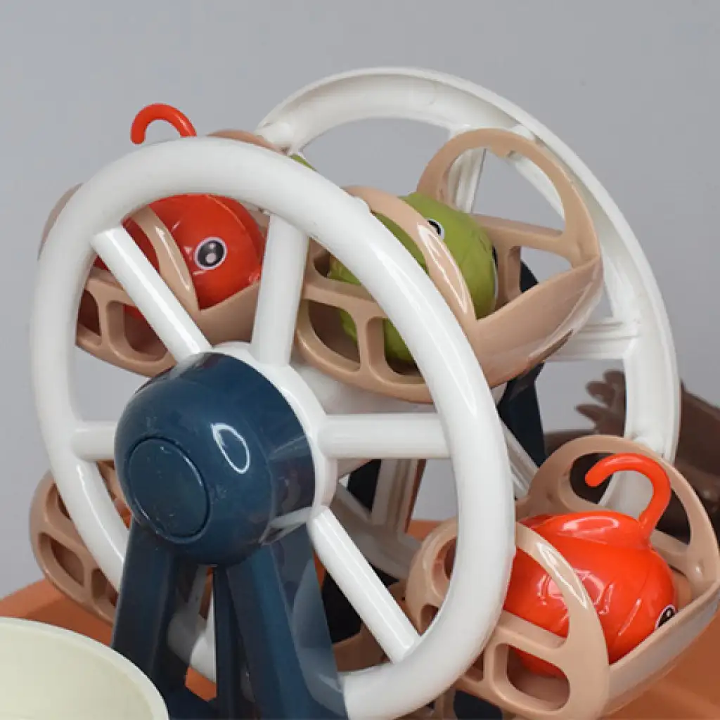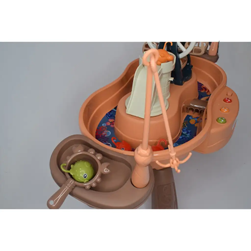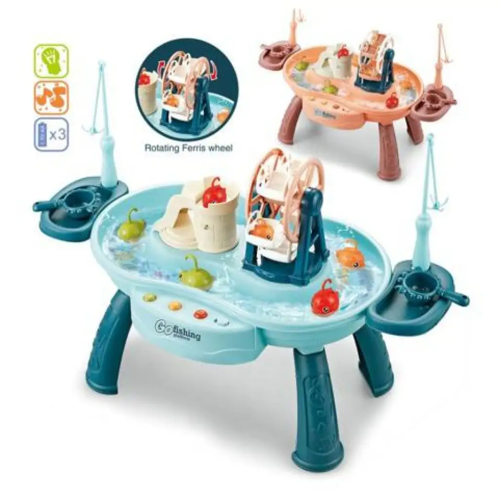 Acest joc de pescuit super va captiva cu siguranță toate vârstele, fie că iubesc pescuitul sau pur și simplu doresc să se relaxeze și să se distreze de minune. Jocul include o piscină cu picioare, care asigură o bază stabilă, astfel încât nu trebuie să vă faceți griji că s-ar putea răsturna în timpul jocului. Designul piscinei permite ca apa să circule cu ajutorul electronicii de recirculare, astfel încât jocul devine cu adevărat palpitant, deoarece trebuie să prindeți peștii în mișcare din apă. Pe lângă recircularea apei, jocul rotește și roata uriașă, oferind o experiență și mai bună jucătorilor, și poate reda trei melodii diferite de parc de distracții. În plus, există și un castel în joc, unde, apăsând un buton lateral, puteți lansa peștii, care apoi pot cădea în apă prin tobogan. Achiziționați-l și veți avea parte de o experiență super cu el.