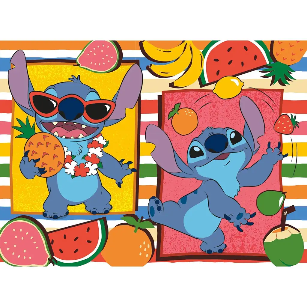 Imaginea puzzle-ului îl înfățișează pe Stitch în cea mai veselă ipostază: cu ochelari de soare, cu un ananas în mână, savurând vara plină de fructe într-o atmosferă tropicală. Culorile vii ale fundalului și fructele tropicale fac jocul cu adevărat atrăgător și vesel. Numărul mai mare de piese aduce o provocare suplimentară, astfel încât experiența de joc este și mai palpitantă pentru preșcolarii mai mari.