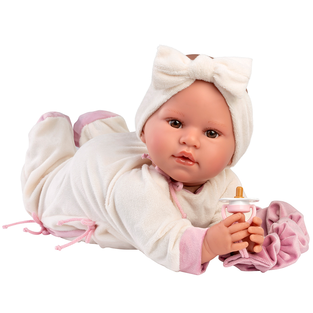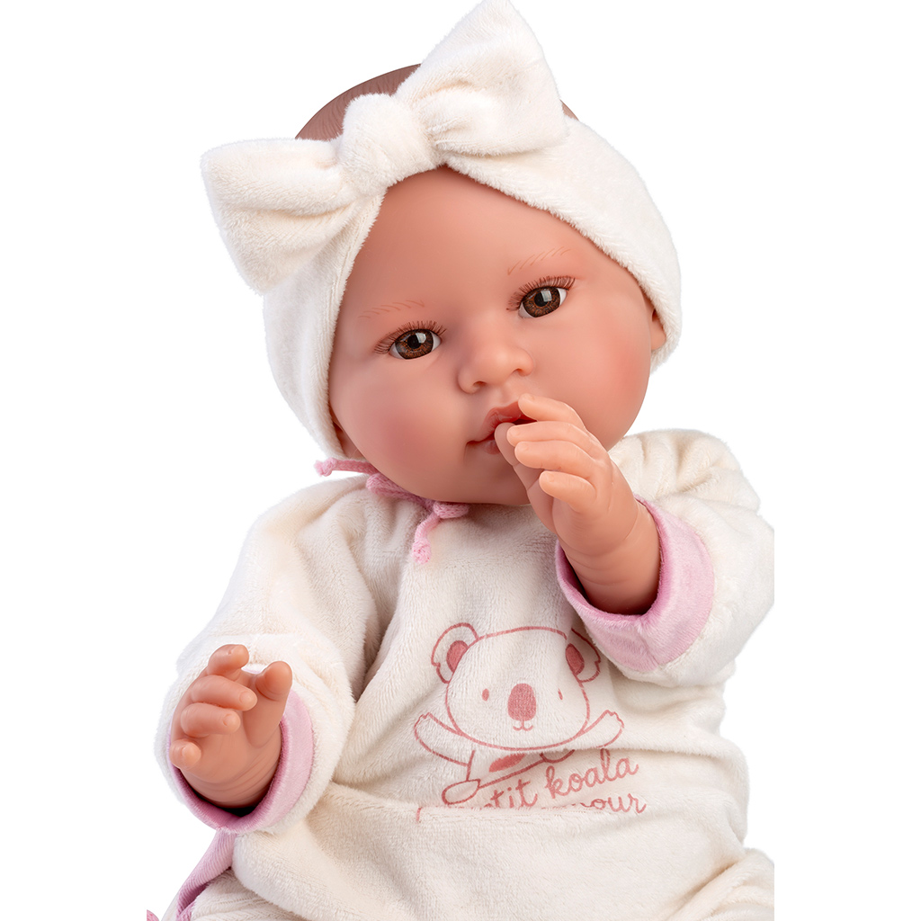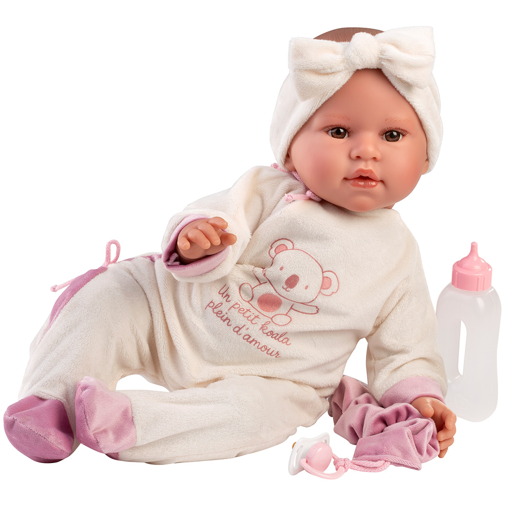 Llorens: Lea, păpușă care plânge de 45 cm, cu suzetă, îmbrăcată într-o salopetă cu koala.