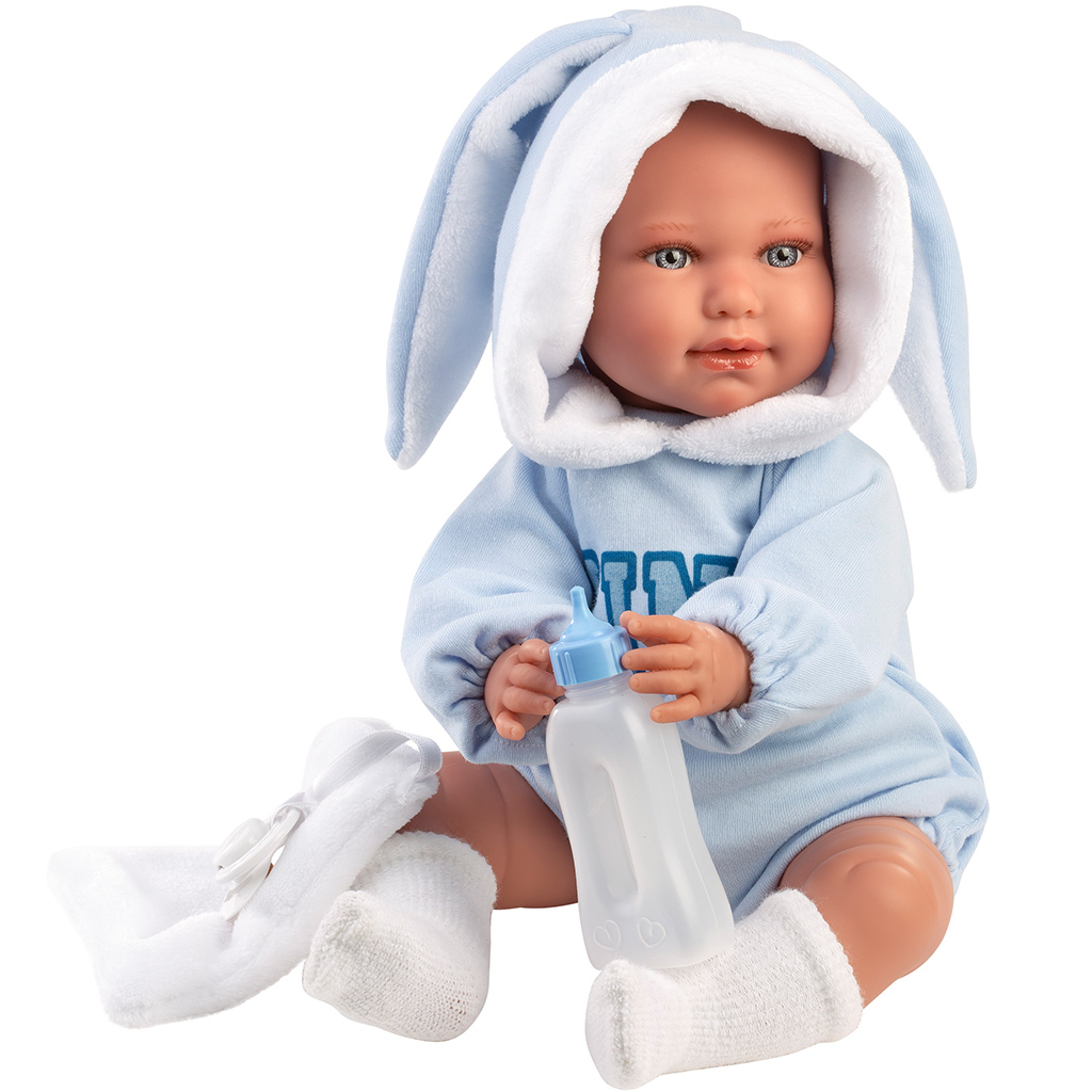 Llorens: Lino, păpușă plângătoare de 45 cm, îmbrăcată într-un costum cu urechi de iepureLlorens: Lino, păpușă plângătoare de 45 cm, îmbrăcată într-un costum cu urechi de iepure